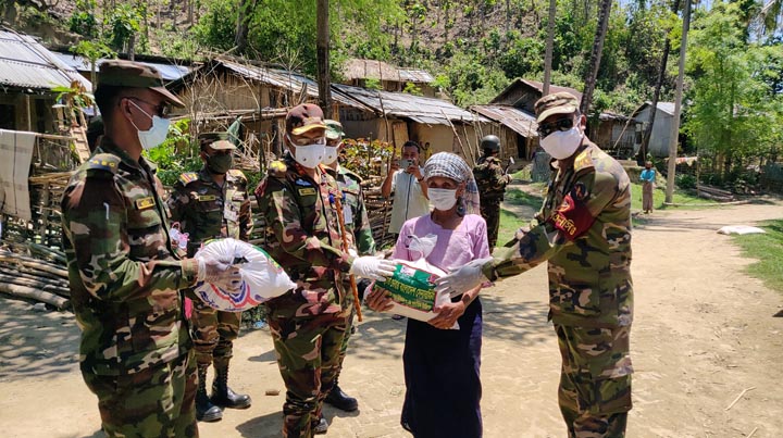সেনা কর্মকর্তা জানান,বান্দরবানে লকডাউনে থাকা জনগণের খাদ্যাভাব দূর করতে বান্দরবান সেনা রিজিয়ন নিয়মিত অসহায় ও দু:স্থ জনসাধারণের মাঝে এাণ সামগ্রী বিতরণ করছে, ত্রাণ সামগ্রী বিতরণ কার্যক্রমের পাশাপাশি বাংলাদেশ সেনাবাহিনী পার্বত্যাঞ্চলে বিভিন্ন সচেতনতামূলক কার্যক্রমও অব্যাহত রেখেছে।
