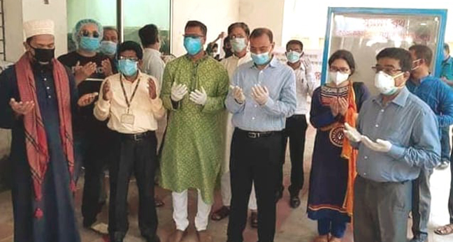 চট্টগ্রাম প্রেসক্লাবে স্থাপিত নমুনা সংগ্রহ বুথ উদ্বোধনশেষে মোনাজাত করছেন সিটি মেয়র আ জ ম নাছির উদ্দিন।[/caption]