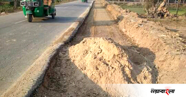 সরেজমিনে দেখা যায়, রাস্তার পাশে পর্যাপ্ত মাটি ভরাট না করেই রাস্তার পাশ থেকে খুঁড়ে সেই মাটিই ব্যবহার করা হচ্ছে। তিন ফুট গভীরতার কথা থাকলেও তা মানা হচ্ছে না। বালি দিয়ে ভরাট করা স্থানে রোলার চাপাও যথাযথভাবে দেওয়া হচ্ছে না। বালি চেপে মূল সড়কের সঙ্গে মাত্র চার ইঞ্চি ব্যবধান রেখে এতে দেওয়া হচ্ছে ইট-বালুর খোয়া। এ খোয়া দেওয়ার পর আবার রোলার চাপা হচ্ছে।
