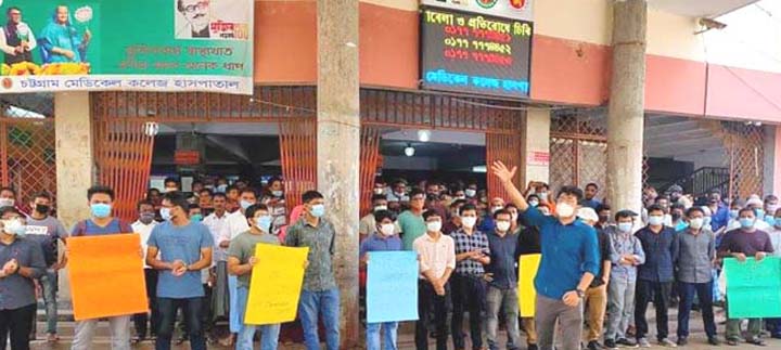 চট্টগ্রাম মেডিক্যাল কলেজ ইন্টার্ন চিকিৎসক অ্যাসোসিয়েশনের বিক্ষোভ সমাবেশ।[/caption]