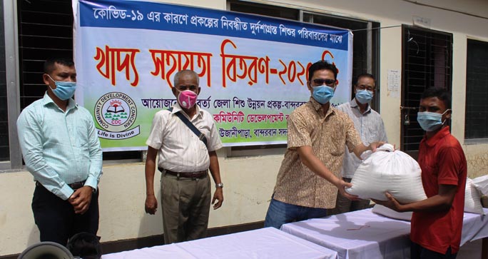 ১৯ আগস্ট (বুুধবার) বান্দরবান সদরের উজানীপাড়ায় কমিউনিটি ডেভালপমেন্ট কনর্সান (সিডিসি) এর অফিস প্রাঙ্গণে নিবন্ধিত শিশুদের মধ্যে এই খাদ্য সামগ্রী বিতরণ করা হয়।