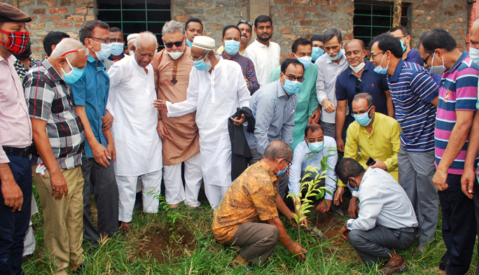 বৃক্ষ চারা রোপন করছেন মাহতাব উদ্দিন চৌধুরী, আ.জ.ম নাছির উদ্দীনসহ নেতৃবৃন্দ।[/caption]