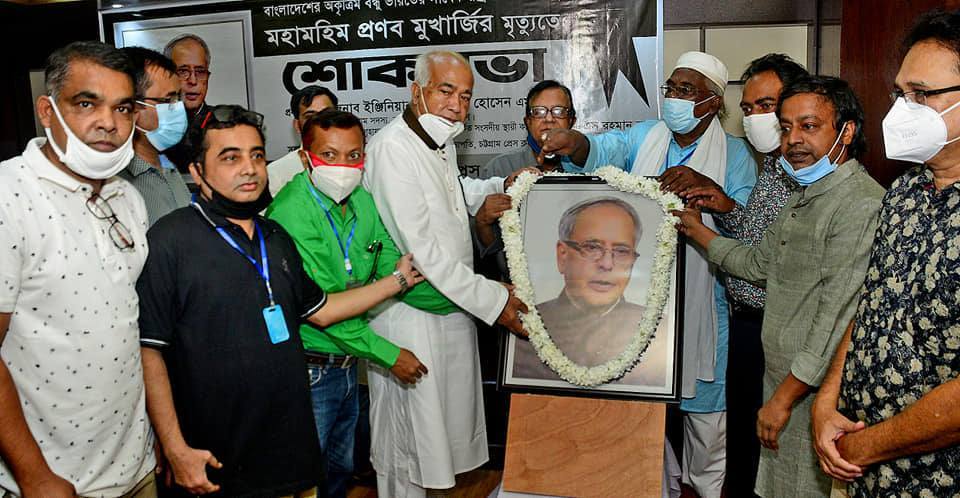 সদ্য প্রয়াত ভারতের সাবেক রাষ্ট্রপতি প্রণব মুখার্জিকে চট্টগ্রাম প্রেসক্লাবে বিনম্র শ্রদ্ধায় স্মরণ। ছবি : নয়াবাংলা[/caption]