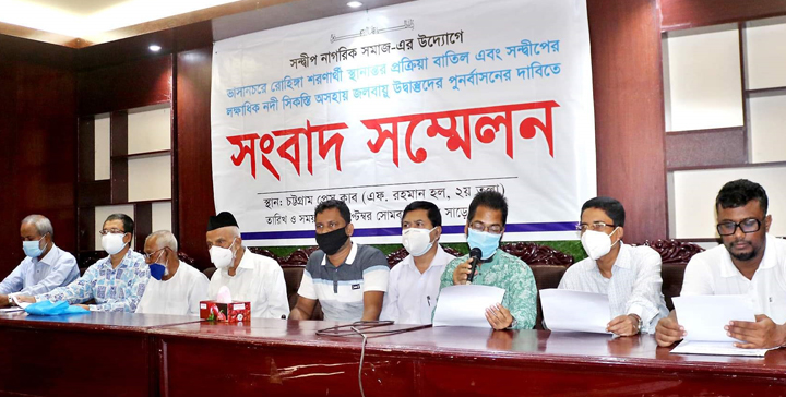 সংবাদ সম্মেলনে লিখিত বক্তব্য পাঠ করেন-সন্দ্বীপ নাগরিক সমাজের প্রধান সমন্বয়ক অধ্যক্ষ মুকতাদের আজাদ খান।