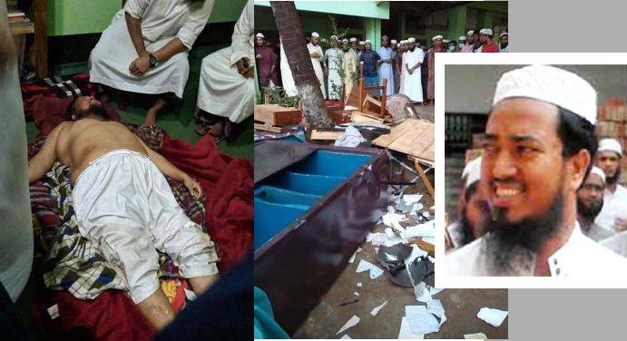 [caption id="attachment_61422" align="aligncenter" width="691"] হেফাজত নেতা মঈনুদ্দিন রুহি লাঞ্ছিত। শিক্ষকের কক্ষ ভাংচুর এবং আনাস মাদানি।[/caption]