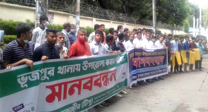 চট্টগ্রাম : দেশের বৃহত্তম উপজেলা ফটিকছড়িকে বিভাজিত করে ২০০৭ সালে ভূজপুর থানা গঠন করা হলেও এখনও ভূজপুরকে উপজেলা হিসেবে ঘোষণা না দেওয়ায় হতাশ ভূজপুরবাসী। ৬টি ইউনিয়ন নিয়ে গঠিত ভূজপুর থানাকে অবিলম্বে উপজেলায় উন্নীত করার দাবিতে মানববন্ধন করেছে ভূজপুর থানা সচেতন নাগরিক সমাজ।