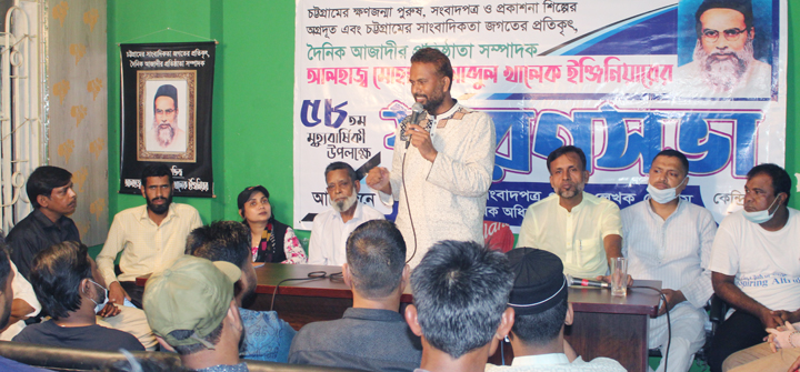 শুক্রবার (২৫ সেপ্টেম্বর) বিকেলে চট্টগ্রামের প্রথম ইলেক্ট্রিক্যাল ইঞ্জিনিয়ার ও প্রাচীনতম সংবাদপত্র দৈনিক আজাদীর প্রয়াত প্রতিষ্ঠাতা সম্পাদক ইঞ্জিনিয়ার মোহাম্মদ আব্দুল খালেক-এর ৫৮তম মৃত্যু বাষির্কী উপলক্ষে প্রগতিশীল সংবাদপত্র পাঠক লেখক ফোরাম ও চট্টগ্রাম নাগরিক অধিকার বাস্তবায়ন সংগ্রাম পরিষদ, কেন্দ্রীয় কমিটির যৌথ আয়োজনে দোয়া মাহফিল ও “ইঞ্জিনিয়ার আব্দুল খালেক-দৈনিক আজাদী” শীর্ষক আলোচনা সভায় প্রধান অতিথির বক্তব্যে তিনি এসব বলেন।
