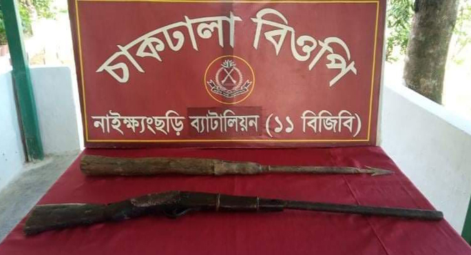 বান্দরবান : নাইক্ষ্যংছড়ি সীমান্ত টহলে পরিত্যক্ত অবস্থায় একটি দেশীয় এক নলা বন্দুক ও বল্লব উদ্ধার করেছে বিজিবি।