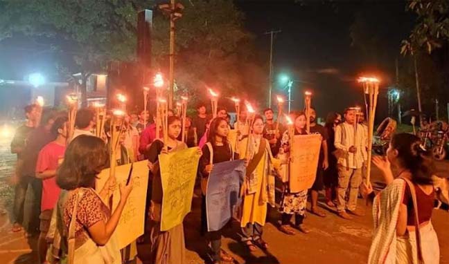চবিতে ধর্ষণের প্রতিবাদে মশাল মিছিল[/caption]