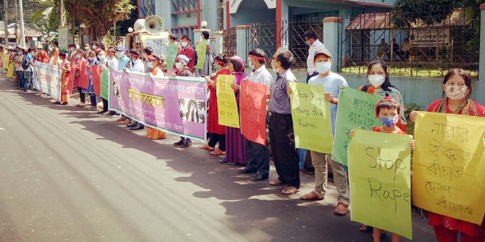 খাগড়াছড়িতে নারী-শিশু ধর্ষণ ও সহিংসতা রোধে মানববন্ধন