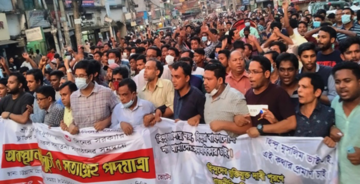 দুর্গাপূজায় ৩ দিন ছুটির দাবিতে চট্টগ্রামে পদযাত্রা[/caption]