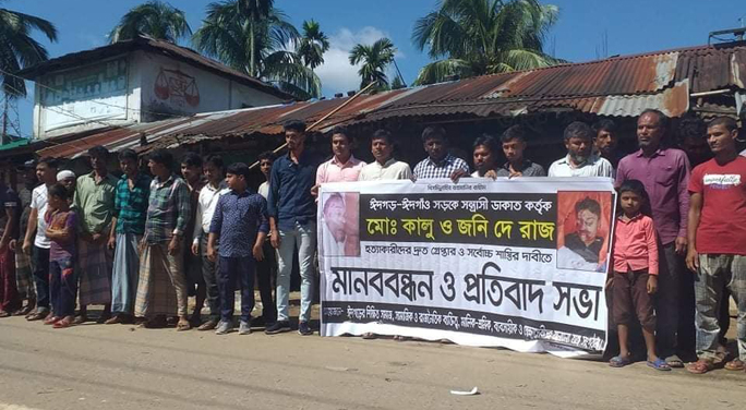 কক্সবাজার : রামু উপজেলার ঈদগড় ইউনিয়নের বাসিন্দা শিশু শিল্পী জনি রাজ দে ও মোঃ কালুকে ঈদগড়-ঈদগাও সড়কে দিনে দুপুরে ডাকাত ও সন্ত্রাসীরা প্রকাশ্যে কুপিয়ে হত্যার প্রতিবাদে সকাল থেকে সন্ধ্যা পর্যন্ত হরতালের ডাক দিয়েছেন এলাকাবাসী। পাশাপাশি চলছে বিভিন্ন সংগঠনের মানববন্ধন ও প্রতিবাদ সমাবেশ।
