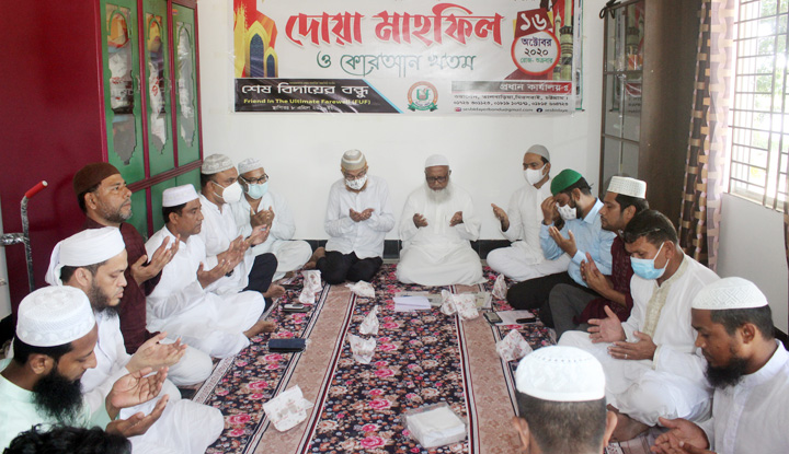 কোরআন খতম শেষে ইঞ্জিনিয়ার মোশাররফ হোসেন এমপি ও তাঁর স্ত্রী আয়েশা মোশাররফ এর সুস্থতা কামনায় দোয়া মোনাজাত পরিচালনা করেন জামালপুর মাদরাসার মুহতামিম মাওলানা মকছুদ আহমেদ।