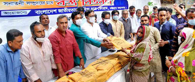 বুধবার (২২ অক্টোবর) দুপুরে দলীয় কার্যালয় নাসিমন ভবন মাঠে জাতীয়তাবাদী হিন্দু ছাত্র ফোরাম চট্টগ্রাম মহানগর শাখা আয়োজিত শারদীয় দূর্গাপূজা উপলক্ষে ৪১টি ওয়ার্ডের সনাতনী ভাইবোনদের মাঝে উপহার সামগ্রী বিতারণকালে