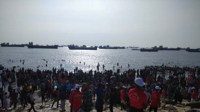 তেল-সিঁদুর পরিয়ে, পান, মিষ্টি মুখে দিয়ে দেবী দুর্গাকে বিদায় জানাতে পতেঙ্গা সমুদ্র সৈকতে ভিড় করেছেন ভক্ত ও অনুরাগীরা। নানা ধর্মের, নানা শ্রেণি ও পেশার মানুষের অংশগ্রহণে প্রতিমা বিসর্জন অনুষ্ঠান হাজারো মানুষের মিলনমেলায় পরিণত হয়েছে।