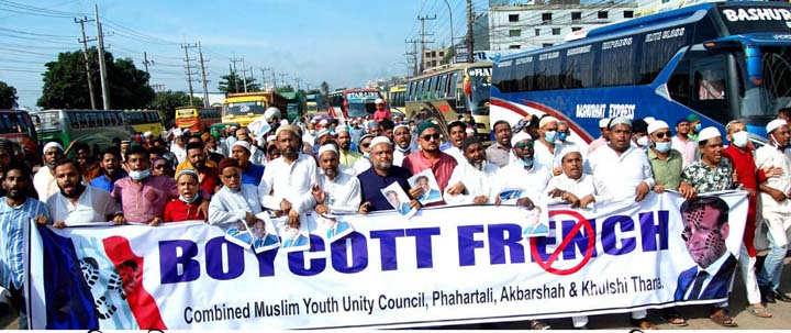 চট্টগ্রাম : প্রাণপ্রিয় নবীজিকে (সা.) উদ্দেশ্য করে ফ্রান্সের আঁকা ব্যঙ্গচিত্রসহ আল্লাহর রসূলের শানে বেয়াদবির প্রতিবাদে বিক্ষোভ মিছিল ও সমাবেশ করেছে সম্মিলিত মুসলিম যুব ঐক্য পরিষদ পাহাড়তলী, আকবরশাহ ও খুলশী থানা শাখা।