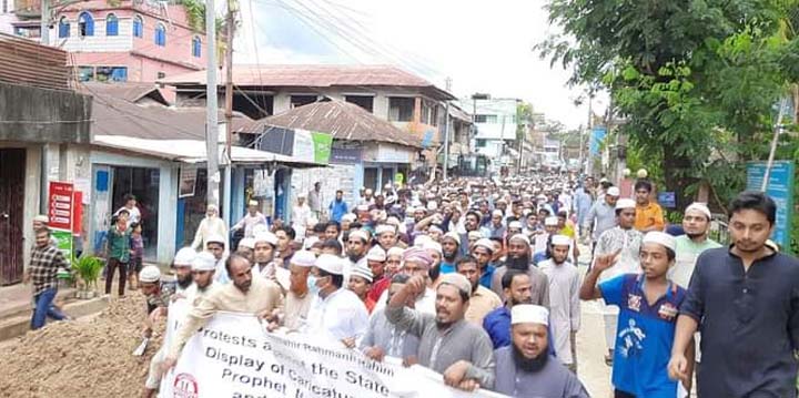 লামা : ফ্রান্সে বিশ্বনবী হরযত মুহাম্মদ (সাঃ) ব্যঙ্গাত্মক কার্টুন প্রদর্শনের প্রতিবাদে লামা বাজারসহ উপজেলার বিভিন্ন স্থানে বিক্ষোভ মিছিল ও প্রতিবাদ সমাবেশ করেছে তৌহিদী জনতা।
