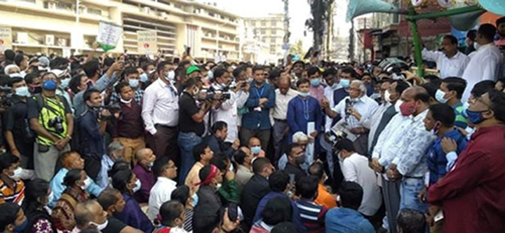চট্টগ্রামের নিউমার্কেট মোড়ে ঐক্য পরিষদের ৯ দফা দাবিতে গণঅবস্থান