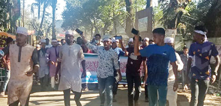 এসময় মাওলানা মো. ইয়াকুবের সভাপতিত্বে আয়োজিত বিক্ষোভ সমাবেশে প্রধান অতিথির বক্তব্য রাখেন আল্ মারকাজুল ইসলামী দারুছুন্নাহ এতিমখানা ও মাদরাসা পরিচালক হাফেজ ক্বারি মাওলানা মো. জালাল ফারুকী।