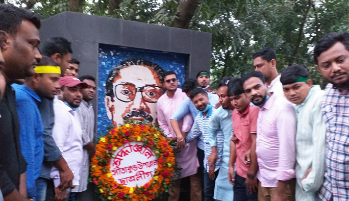 চট্টগ্রাম : সীতাকুণ্ডে জাতির পিতা বঙ্গবন্ধু শেখ মুজিবুর রহমানের প্রতিকৃতিতে পুষ্পস্তবক অর্পন করে শ্রদ্ধা জানালেন নব নির্বাচিত উপজেলা ছাত্রলীগ নেতৃবৃন্দ।