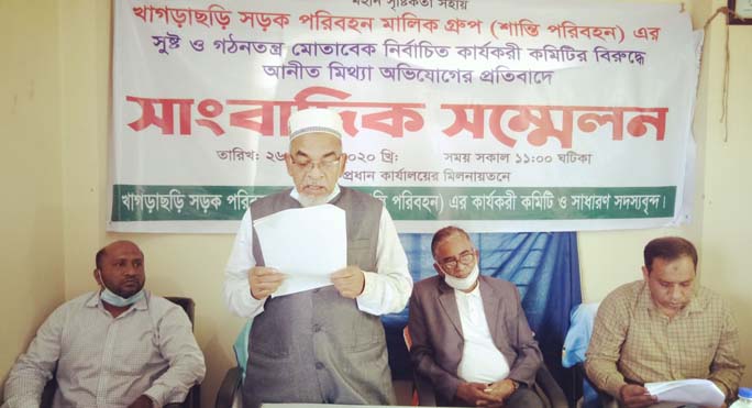 খাগড়াছড়িতে সড়ক পরিবহন মালিক গ্রুপের সভাপতি ও সাধারণ সম্পাদকের বিরুদ্ধে মিথ্যা অভিযোগের প্রতিবাদে সংবাদ সম্মেলন করেছে সড়ক পরিবহন মালিক গ্রুপ (শান্তি পরিবহন)।