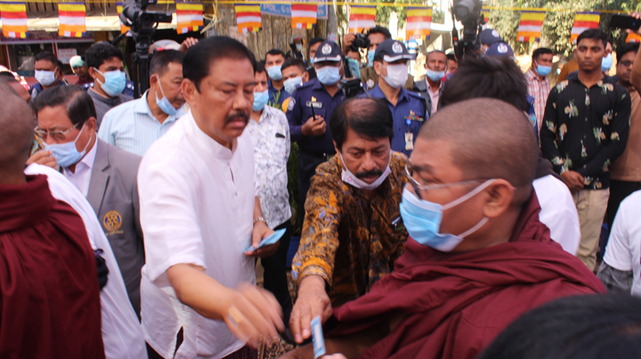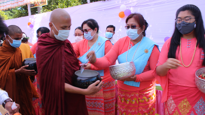 অনুষ্ঠা্নে উপস্থিত থেকে বৌদ্ধ ভিক্ষুদের পিন্ডদান করেন পার্বত্য চট্টগ্রাম বিষয়ক মন্ত্রণালয়ের মন্ত্রী বীর বাহাদুর উশৈসিং এমপি, পার্বত্য জেলা পরিষদের চেয়ারম্যান ক্য শৈ হ্লা, সদস্য ক্যসাপ্রু, সিভিল সার্জন ডা: অংসুইপ্রু মারমাসহ বৌদ্ধ সম্প্রদায়ের বিপুল সংখ্যক নারী ও পুরুষ।
