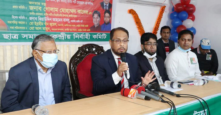 জাতীয় ছাত্র সমাজের সাধারণ সভার উদ্বোধনী অনুষ্ঠানে প্রধান অতিথির বক্তব্য রাখছেন জাতীয় পার্টির চেয়ারম্যান ও বিরোধী দলীয় উপনেতা জিএম কাদের।[/caption]