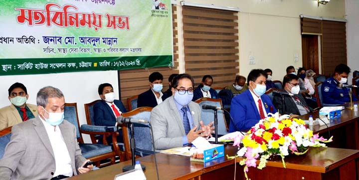 চট্টগ্রাম সার্কিট হাউসে আয়োজিত মতবিনিময় সভায় প্রধান অতিথির বক্তব্য রাখছেন স্বাস্থ্য ও পরিবার কল্যাণ মন্ত্রনালয়ের স্বাস্থ্য সেবা বিভাগের সচিব মো. আবদুল মান্নান।[/caption]