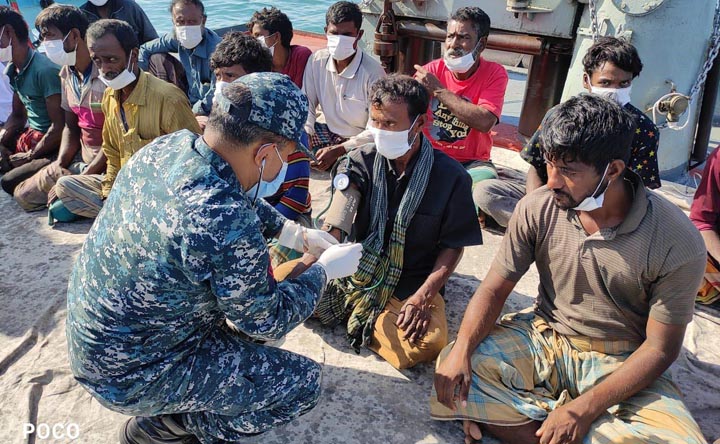 বিকল ইঞ্জিন নিয়ে ২২দিন সাগরে ভাসমান ১৮ জেলেকে উদ্ধার করলো নৌবাহিনী[/caption]