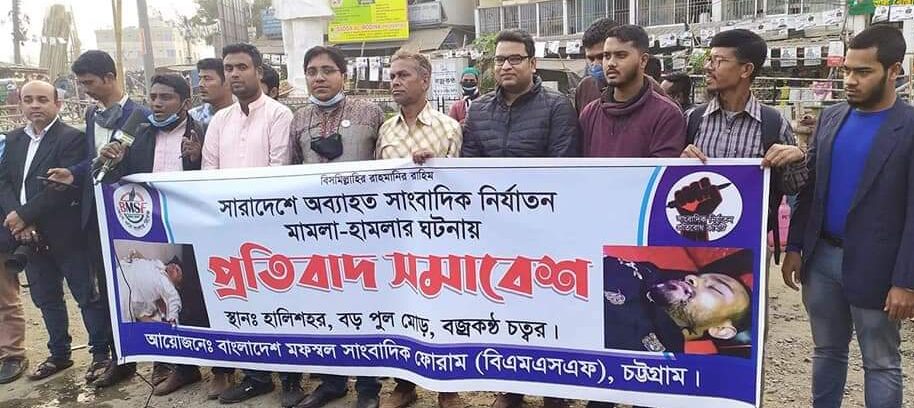 চট্টগ্রাম : সারাদেশে সাংবাদিকদের ওপর হামলা, মামলার প্রতিবাদে সমাবেশ করেছে বাংলাদেশ মফস্বল সাংবাদিক ফোরাম (বিএমএসএফ)।