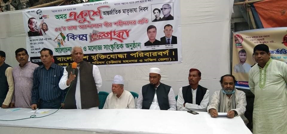 চট্টগ্রাম : বাংলাদেশ মুক্তিযোদ্ধা পরিবারবর্গ ও বঙ্গবন্ধু আদর্শ ঐক্য পরিষদ চট্টগ্রাম মহানগর ও দক্ষিণ জেলার যৌথ উদ্যোগে মহান আন্তর্জাতিক মাতৃ ভাষা দিবসের সাংস্কৃতিক অনুষ্ঠান ও আলোচনা সভা অনুষ্ঠিত হয়েছে।