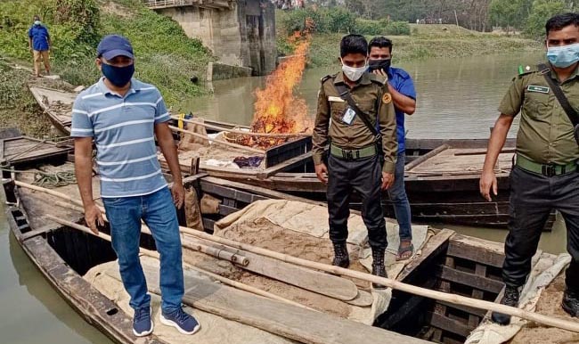 হালদা নদীর মা মাছ, জীব বৈচিত্র্য এবং ডলফিন রক্ষায় ভ্রাম্যমাণ আদালত পরিচালনা করে এসব ধ্বংস করা হয়।একইসাথে বালু উত্তোলনের কাজে ব্যবহৃত সরঞ্জামও জব্দ করা হয়।