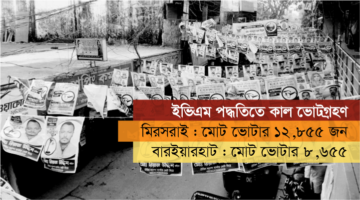 মিরসরাই (চট্টগ্রাম) : চট্টগ্রামের মিরসরাই ও বারইয়ারহাট পৌরসভা নির্বাচন অনুষ্ঠিত হবে কাল রবিবার (২৮ ফেব্রুয়ারি)। এখানে প্রথম বারের মত ইলেকট্রনিক ভোটিং মিশিনের (ইভিএম) মাধ্যমে ভোট গ্রহণ হতে যাচ্ছে। এ নিয়ে সাধারণ ভোটারদের মধ্যে আগ্রহের পাশাপাশি আশঙ্কারও কমতি নেই।