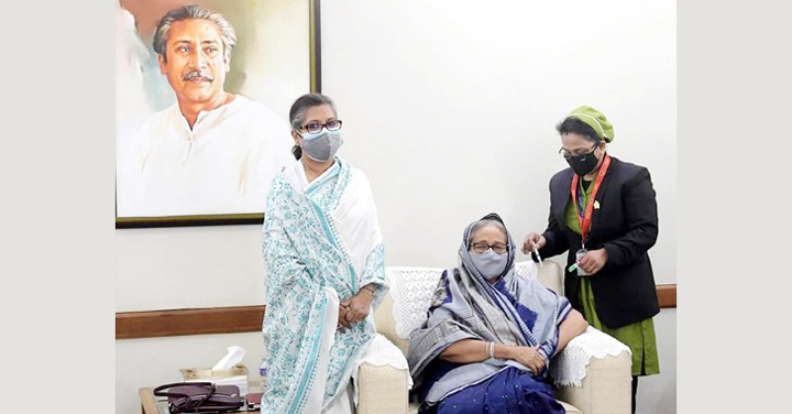 এর আগে গত ২৪ ফেব্রুয়ারি করোনার টিকা নেন শেখ রেহানা।