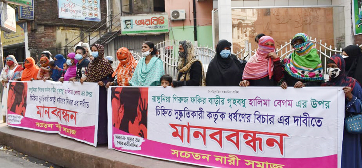 রাঙ্গুনিয়ায় গৃহবধু ধর্ষণ : আসামীদের গ্রেপ্তারের দাবিতে মানববন্ধন
