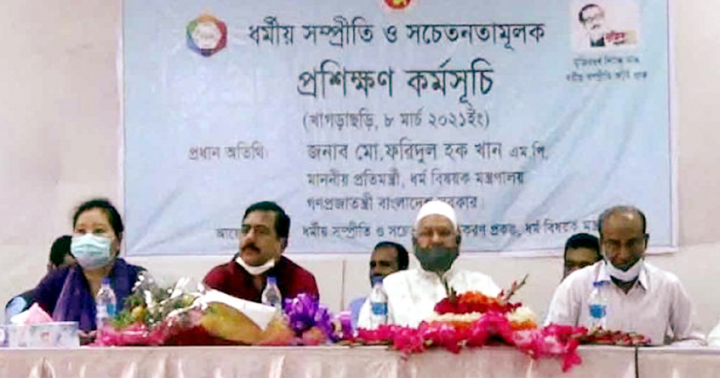 খাগড়াছড়ি : ধর্ম নিয়ে সহিংসতা উস্কে না দিয়ে, ধর্ম নিয়ে অপকর্ম না করে, ধর্মকে হৃদয়ে ধারণ এবং লালন-পালনে খাগড়াছড়িতে “ধর্মীয় স¤প্রীতি ও সচেতনতামূলক” প্রশিক্ষণ কর্মসূচি অনুষ্ঠিত হয়েছে।