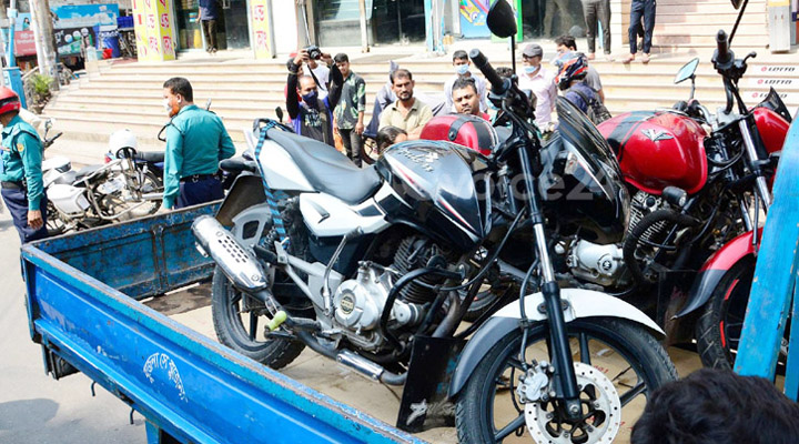 বৃহস্পতিবার (১১ মার্চ) নগরীর বিভিন্ন রুটে অভিযান চালিয়ে বহু মোটরসাইকেল জব্দ করেছে পুলিশ।