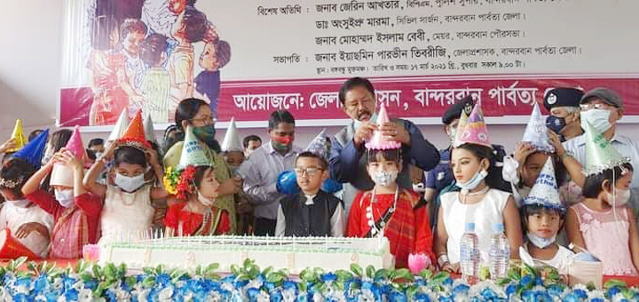 বান্দরবানে কেক কেটে জাতির পিতার জন্মোৎসব উদযাপন।[/caption]