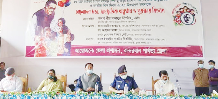 বান্দরবান : বর্ণাঢ্য আয়োজনের মধ্য দিয়ে পার্বত্য জেলা বান্দরবানে উদযাপিত হয়েছে হাজার বছরের শ্রেষ্ঠ বাঙালি, জাতির পিতা বঙ্গবন্ধু শেখ মুজিবুর রহমানের ১০১তম জন্ম বার্ষিকী ও জাতীয় শিশু দিবস।