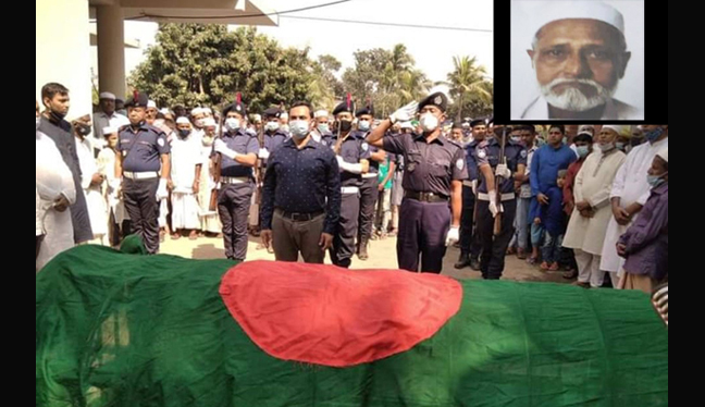 বুধবার (১৭ মার্চ) দুপুরে উপজেলার ফরহাদাবাদ ইউনিয়নের গুল মোহাম্মদ চৌধুরী বাড়িতে নামাজে জানাযার আগে তাকে রাষ্ট্রীয় সর্বোচ্চ এ সম্মান জানানো হয়।