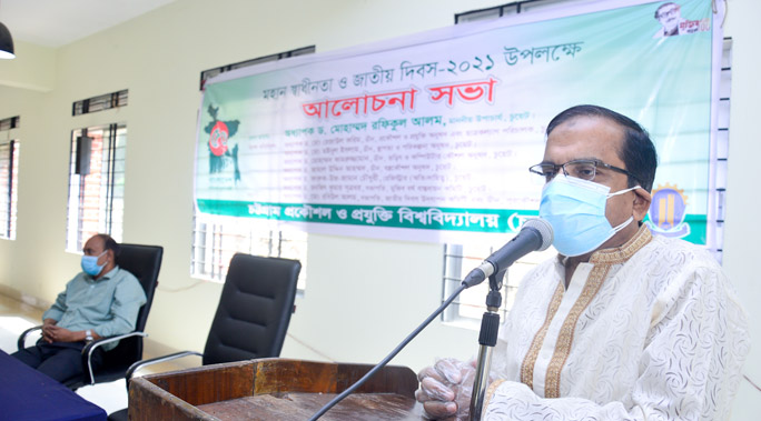 প্রধান অতিথির বক্তব্যে ভাইস চ্যান্সেলর অধ্যাপক ড. মোহাম্মদ রফিকুল আলম বলেন, “প্রতিবছর আমরা স্বাধীনতা দিবস পালন করলেও এবারের আবহটা ভিন্ন, তাৎপর্যও অনেক। আজ আমরা স্বাধীনতার সুবর্ণজয়ন্তী উদযাপন করছি। বিষয়টি বাঙালি জাতির জন্য অত্যন্ত গর্বের ও আনন্দের। একটি পিছিয়ে ও শোষিত জনগোষ্ঠীকে বঙ্গবন্ধু স্বাধীনতা উপহার দিয়েছেন। স্বাধীনতার ৫০ বছরে এসে বঙ্গবন্ধুর সেই সোনার বাংলা গড়ার স্বপ্নকে বাস্তবে রূপ দিয়েছেন জননেত্রী শেখ হাসিনা। তাঁর দক্ষ ও গতিশীল নেতৃত্বে বাংলাদেশ আজ বিশ্বে একটি মর্যাদাপূর্ণ রাষ্ট্র হিসেবে প্রতিষ্ঠা লাভ করেছে। তাই আজকের এই গৌরবোজ্জ্বল দিনে আমাদের শপথ হোক ২০৪১ সনের মধ্যে বাংলাদেশকে একটি উন্নত ও সম্মৃদ্ধ দেশ হিসেবে গড়ে তুলতে আমরা একযোগে কাজ করবো। সেক্ষেত্রে চুয়েটকে একটি প্রকৌশল ও প্রযুক্তি বিশ্ববিদ্যালয় হিসেবে প্রত্যক্ষ ভূমিকা রাখতে হবে।”