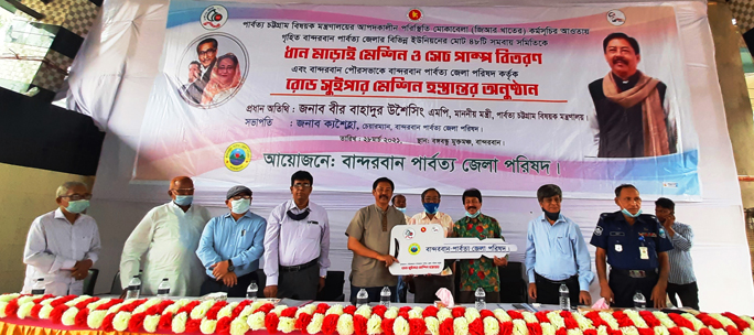 বান্দরবান পার্বত্য জেলা পরিষদের অর্থায়নে ৫৬ লক্ষ টাকা ব্যয়ে ২টি বান্দরবান পৌরসভার জন্য সিটি কর্পোরেশন রোড সুইপার মেশিন ও পার্বত্য চট্টগ্রাম বিষয়ক মন্ত্রণালয়ের আপদকালীন পরিস্থিতি মোকাবেলা (জিআর খাতের) কর্মসূচির আওতায় গৃহিত ২২ লক্ষ টাকা ব্যয়ে বান্দরবানের বিভিন্ন ইউনিয়নের ৪৮টি সমবায় সমিতিকে ১৪ টি ধান মাড়াই মেশিন ও ৩৪টি সেচ পাম্প বিতরণ করা হয়।