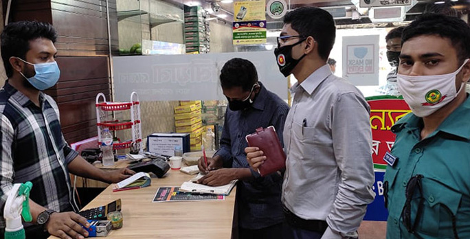 জেলা প্রশাসনের নির্বাহী ম্যাজিস্ট্রেট প্রদীপ দত্ত বলেন, জেলা প্রশাসনের পক্ষ থেকে একে খান এলাকায় ভ্রাম্যমাণ আদালত পরিচালনা করা হয়। এসময় মুদিপণ্য, কাঁচাবাজার এবং ওষুধের দোকান খোলা রাখার নির্দেশনা থাকলেও সরকারের আদেশ অমান্য করে খাবারের দোকান খোলা রাখায় দুই দোকানিকে ৭ হাজার টাকা জরিমানা করা হয়। এছাড়া মাস্ক পরিধান না করায় আরও ৮ ব্যক্তিকে জরিমানা করা হয়।