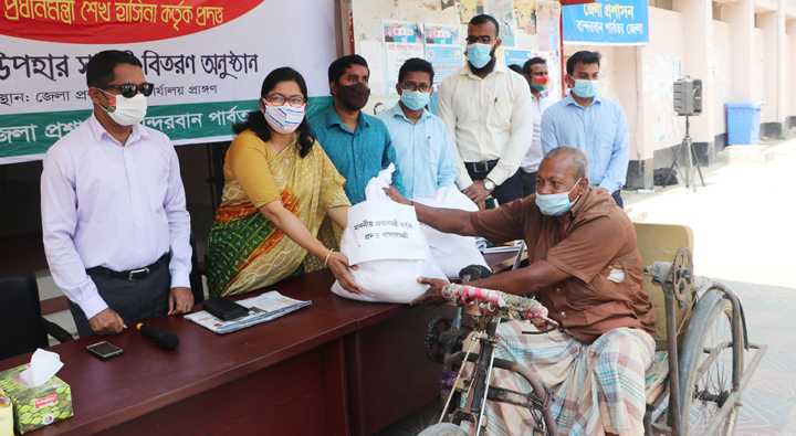এসময় বান্দরবানের বিভিন্ন অসহায় ও দরিদ্র পরিবারের সদস্যরা উপস্থিত হয়ে সামাজিক দূরত্ব নিশ্চিত করে প্রধানমন্ত্রী শেখ হাসিনার এই উপহার সামগ্রী গ্রহণ করে।