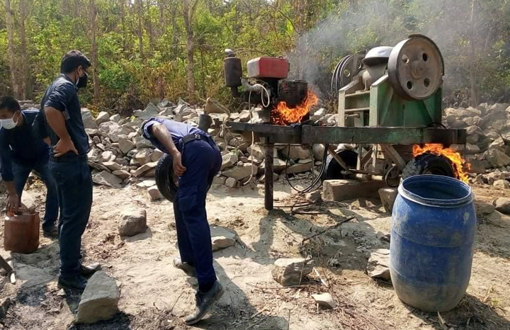 পাথর ভাঙার মেশিন ধ্বংস, বান্দরবানে জব্দ ১০হাজার ঘনফুট পাথর[/caption]