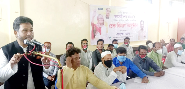 পটিয়ায় দুস্থ রোগীদের মাঝে প্রধানমন্ত্রীর চিকিৎসা সহায়তার চেক বিতরনী অনুষ্ঠানে বক্তব্য রাখছেন দক্ষিন জেলা আওয়ামী লীগের সাংস্কৃতিক সম্পাদক ও বিজিএমইএ নেতা মোহাম্মদ নাছির[/caption]