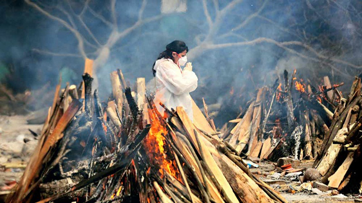 ভারতে প্রতিদিনই সংক্রমণ ও মৃত্যুর সংখ্যা আগের রেকর্ডকে ছাড়িয়ে যাচ্ছে। প্রচণ্ড অক্সিজেন সংকটে মৃত্যু হয়েছে বহু মানুষের। শ্মশানে জায়গার সংকুলান না হওয়ায় দিল্লিসহ কয়েক রাজ্যে গণচিতা তৈরি করা হয়েছে। খোঁড়া হচ্ছে গণকবর এবং মরদেহ পোড়াতে বানানো হয়েছে অস্থায়ী শ্মশান। জাত-ধর্ম ভুলে মৃতদেহ সৎকারে সহযোগিতা করছে মুসলিমরাও। স্বাস্থ্যকর্মীরা জানিয়েছেন, এর আগে এমন অবস্থা কখনো দেখেননি তারা। ভারতে এখন যে হারে আক্রান্তের সংখ্যা বাড়ছে তার গতি যুক্তরাষ্ট্রের চেয়ে অনেক বেশি। ভারতে এমন পরিস্থিতি চলমান থাকলে যুক্তরাষ্ট্রও পেছনে পড়ে যাবে। করোনার প্রকোপ ভয়াবহ আকার ধারণ করায় ভারতে স্বাস্থ্য ব্যবস্থা ভেঙে পড়েছে।