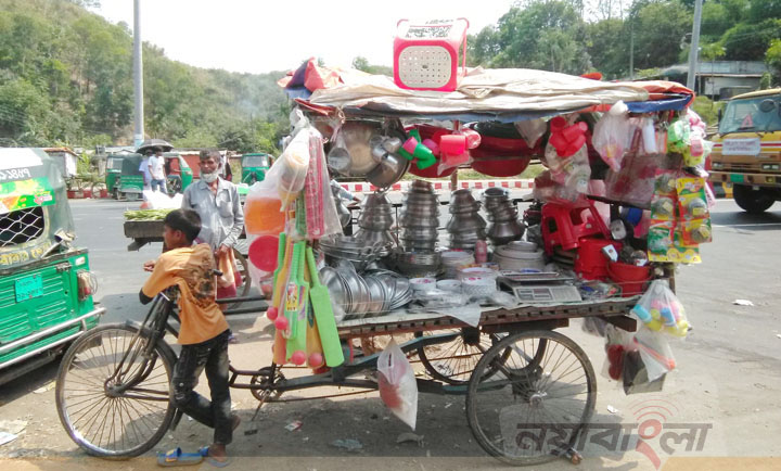 শুক্রবার (৭ মে) নগরীর বায়েজিদ-ভাটিয়ারি লিংক রোডে দেখা মিলে তার। নিজের ছোট্ট শিশু সন্তানকে সাথে নিয়ে ভ্যানে সাজিয়েছেন পুরো দোকান। সর্বত্র যখন বন্ধ বন্ধ ভাব, মানুষ যখন ঘরমুখি। তখন তিনিই মানুষের দ্বারে দ্বারে ঘুরছেন সংসারের সব প্রয়োজনীয় পণ্য নিয়ে। ছবি তো নয়ই, বরং বহু চেষ্টায়ও গণমাধ্যমের সাথে কথা বলতে চাননি এ ব্যবসায়ী।
