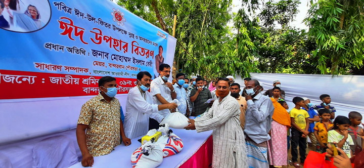 দু:স্থ ও অসহায়দের হাতে বান্দরবান শ্রমিক লীগের উপহার