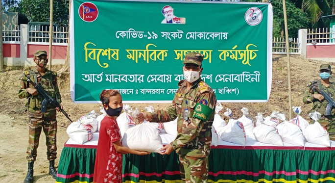 বান্দরবান সেনা জোনের মানবিক সহায়তা ১শ পরিবারে